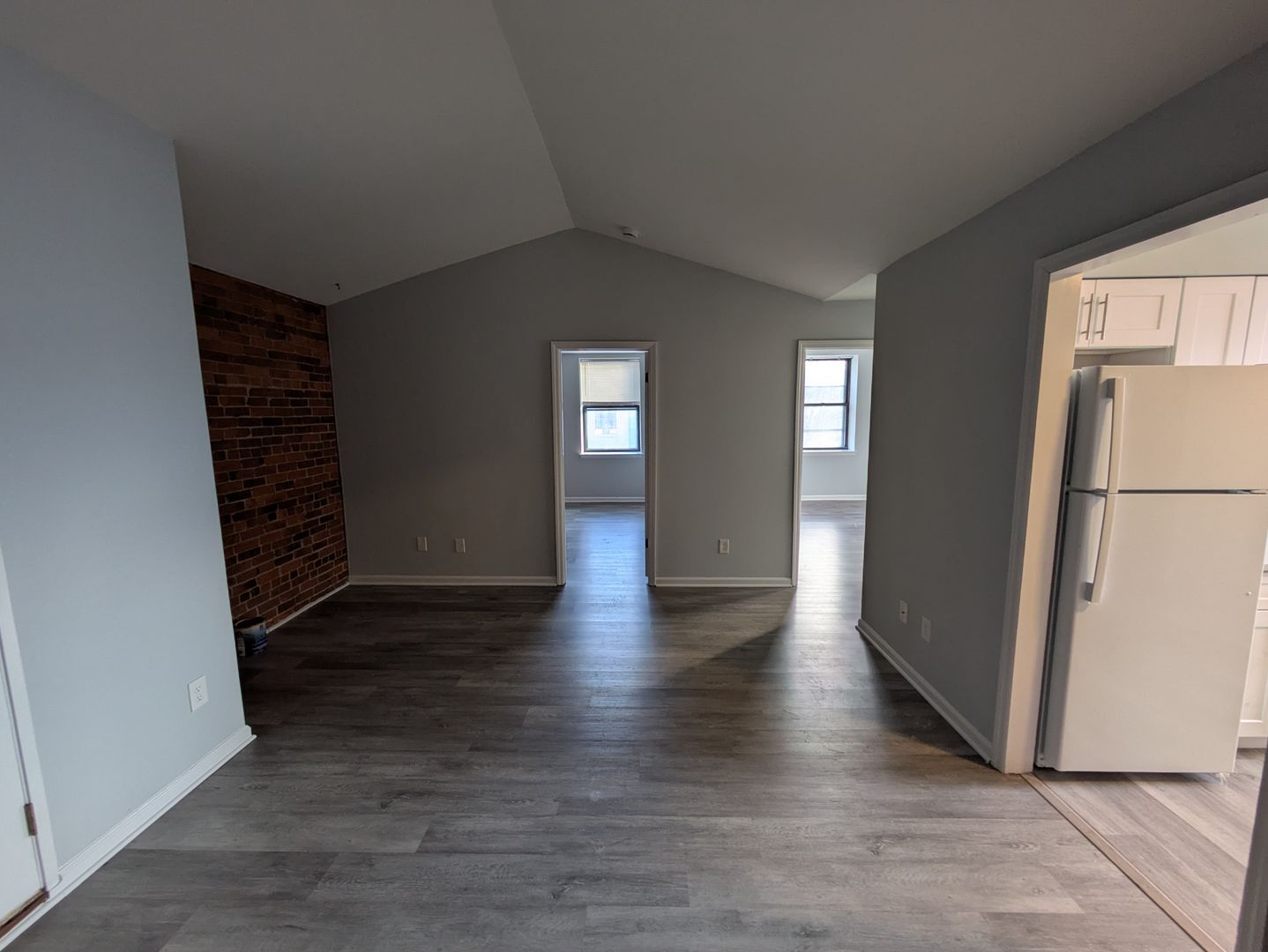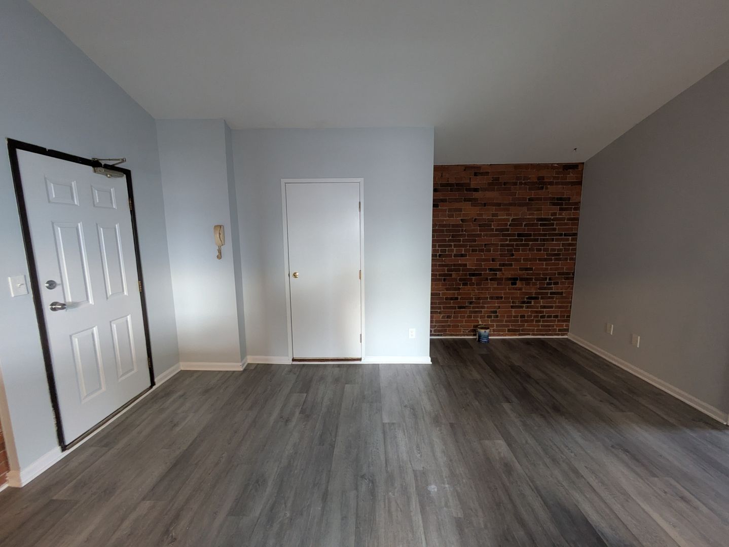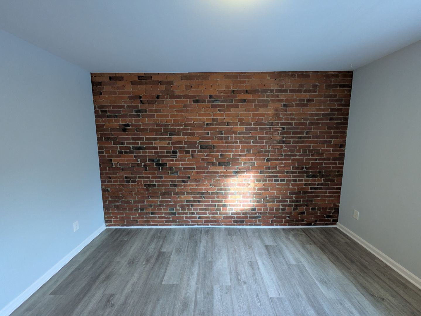 The Vibe: Authentic brick-face walls and high ceilings provide a "loft" feel, while brand-new LVT flooring and a fresh, neutral paint palette keep the space feeling bright and airy.